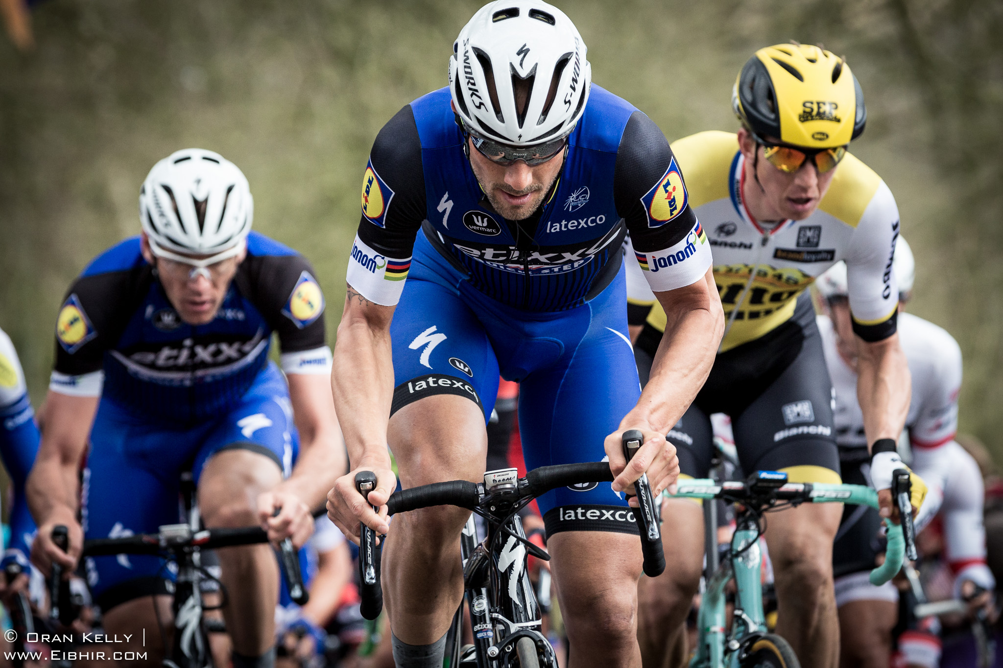 2016_GentWevelgem_TomBOONEN(BEL-EQS)_Peloton_Kemmelberg 2016 GentWevelgem, TomBOONEN(BEL-EQS) leads Peloton up the Kemmelberg.